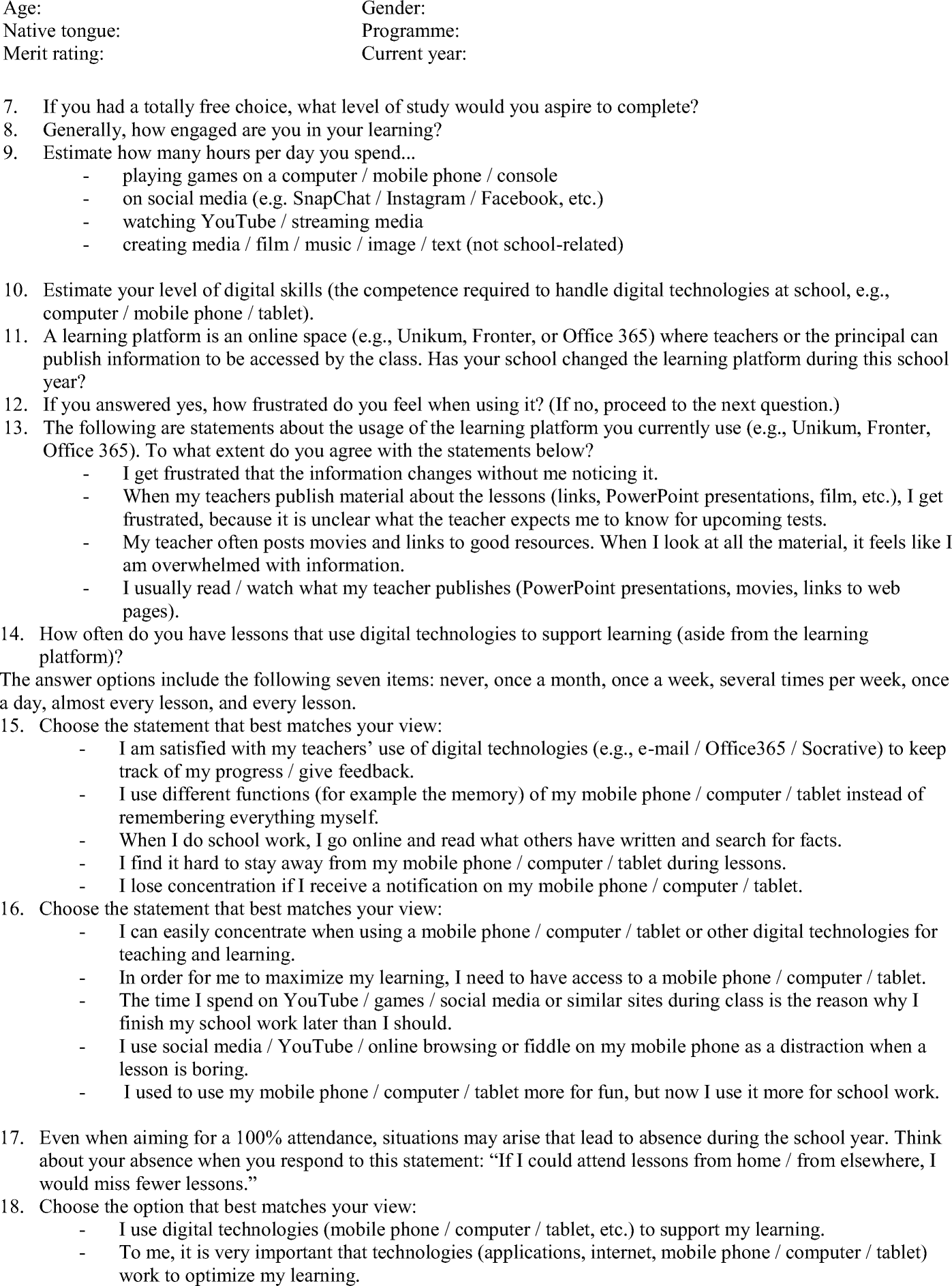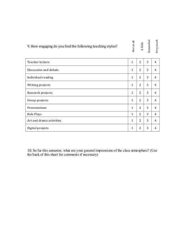 Sample Page From The Student Questionnaire Download