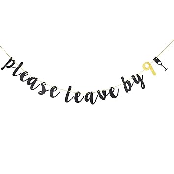 Please Leave By 9 Banner Funny Birthday Holiday Housewarming Gold Party Banner Bachelorette Engaged Hanging Letter Sign Banner Black Glitter