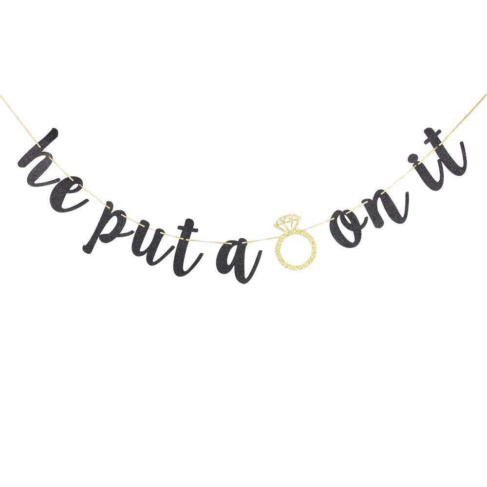 He Put A Ring On It Banner Black Glitter Engagement Party Decoration Sign For Wedding Bachelorette Bridal Showers Party Supplies