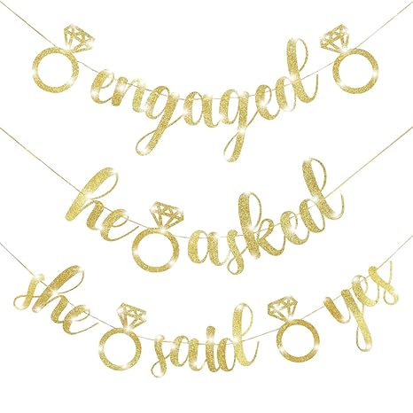 Engagement Party Banners Glitter Gold Letters He Asked She Said Yes Garland For Wedding Engagement Party Hen Party Bridal Shower Bachelorette Party