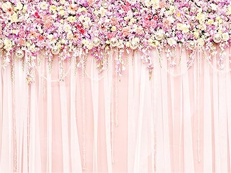 Ml Wedding Vinyl Backdrops For Photography 5x7ft Pink Curtain Flower Banner Photo Backdrop Engagement Party Background Customized