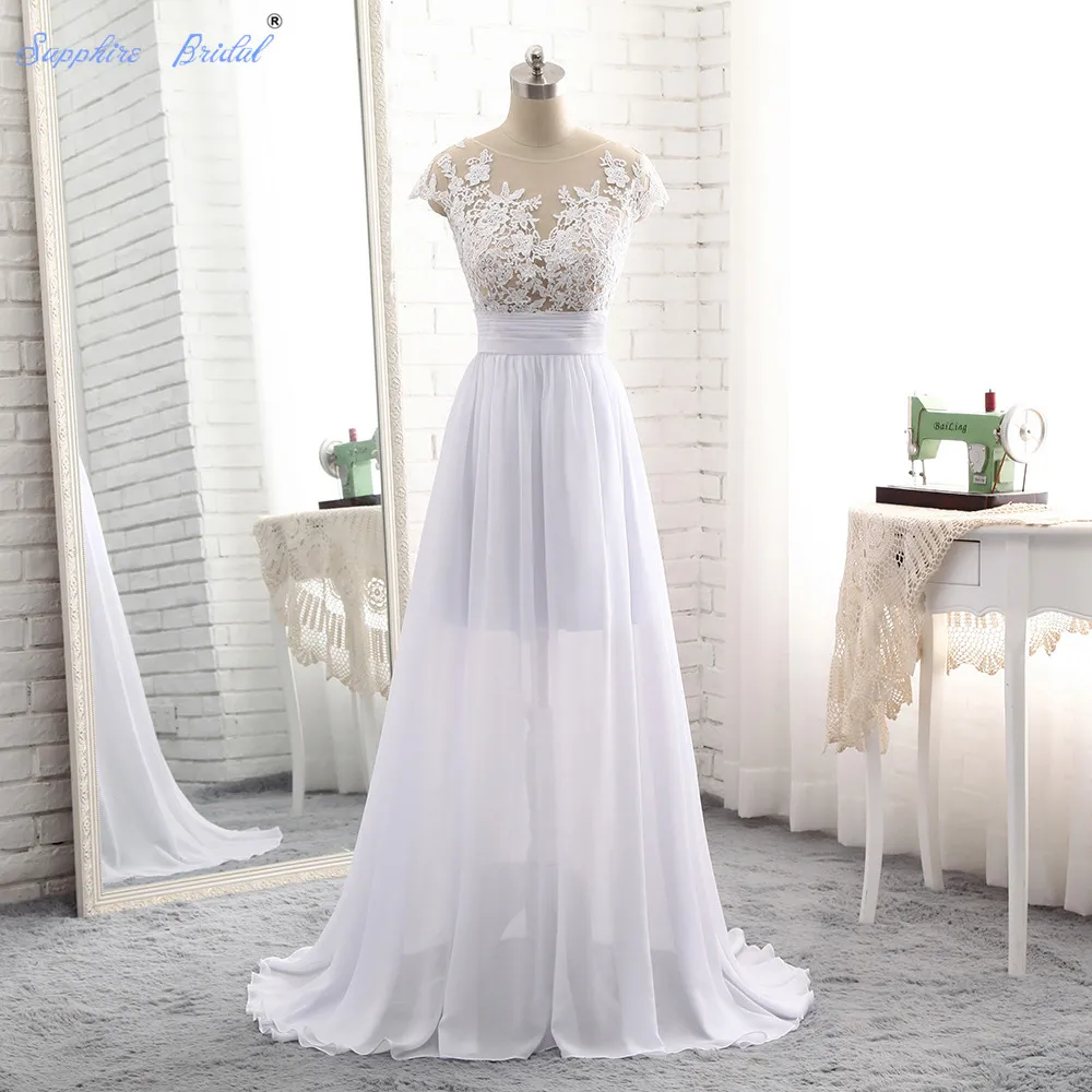 Us 69 52 12 Off Sapphire Bridal Vestido De Noiva Simple Chiffon Long Beach Wedding Dress Top See Through Boho Bridal Gowns Hot Sale In Wedding
