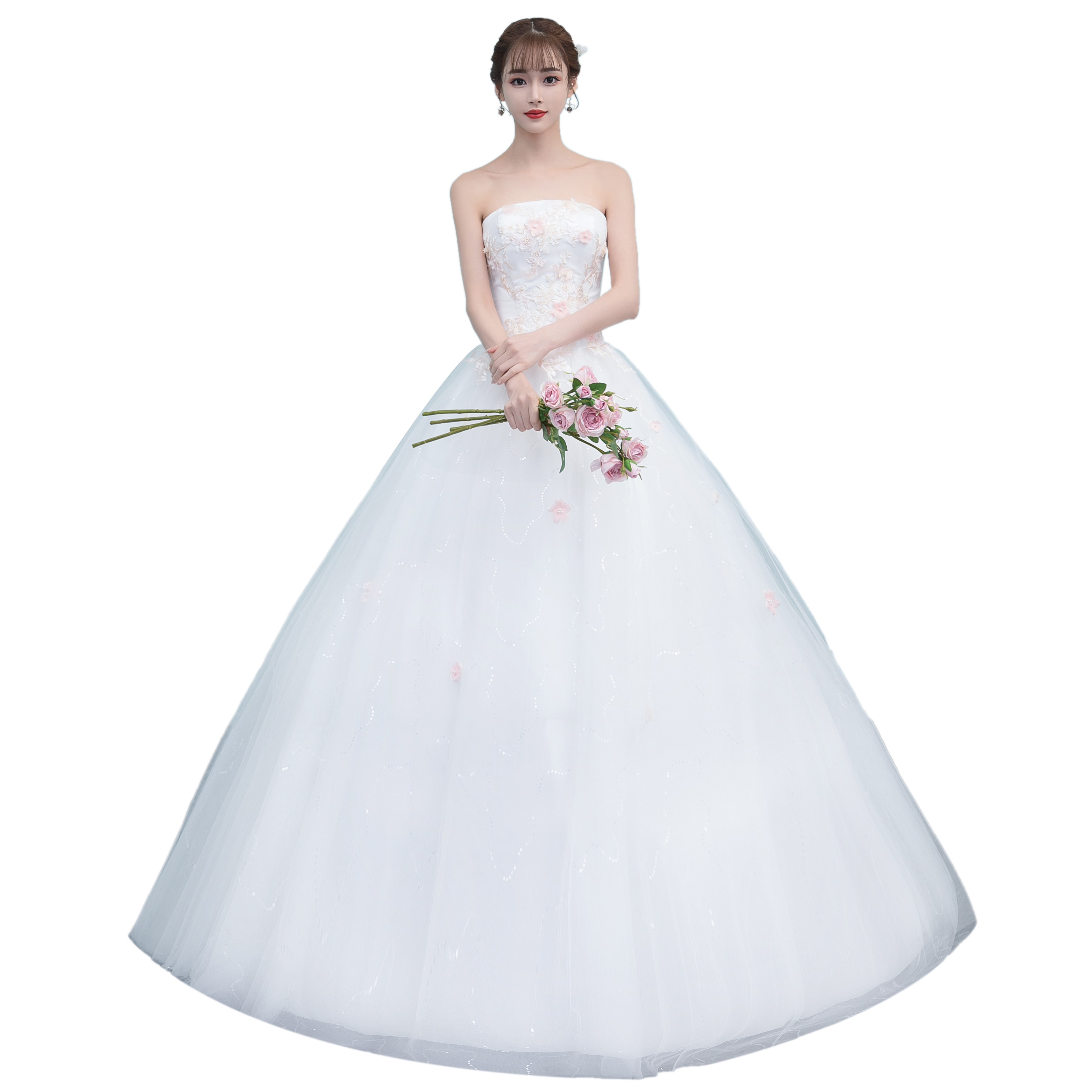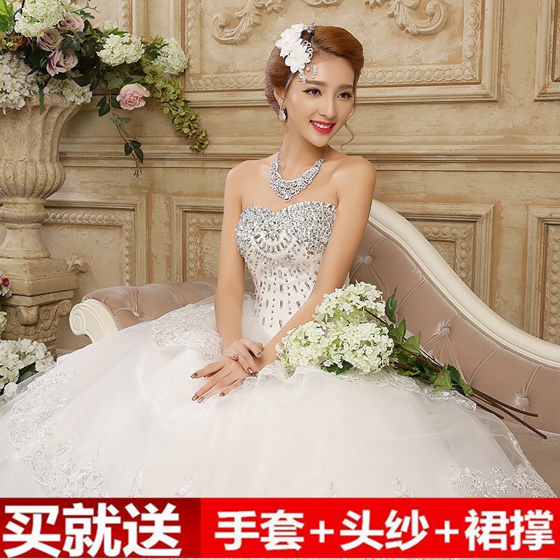 Wedding Dress Qi Wedding Dress Tube Top Lace Flower Korean Simple Wedding Tube Top