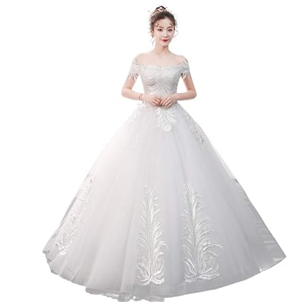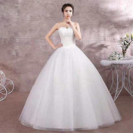 Amazon Com L Elegant Wedding Dress Simple Princess White