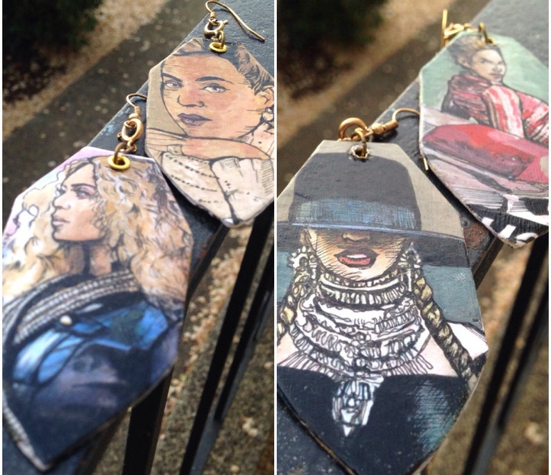 Beyonce Formation Hand Painted Earrings Double Sided Version 2